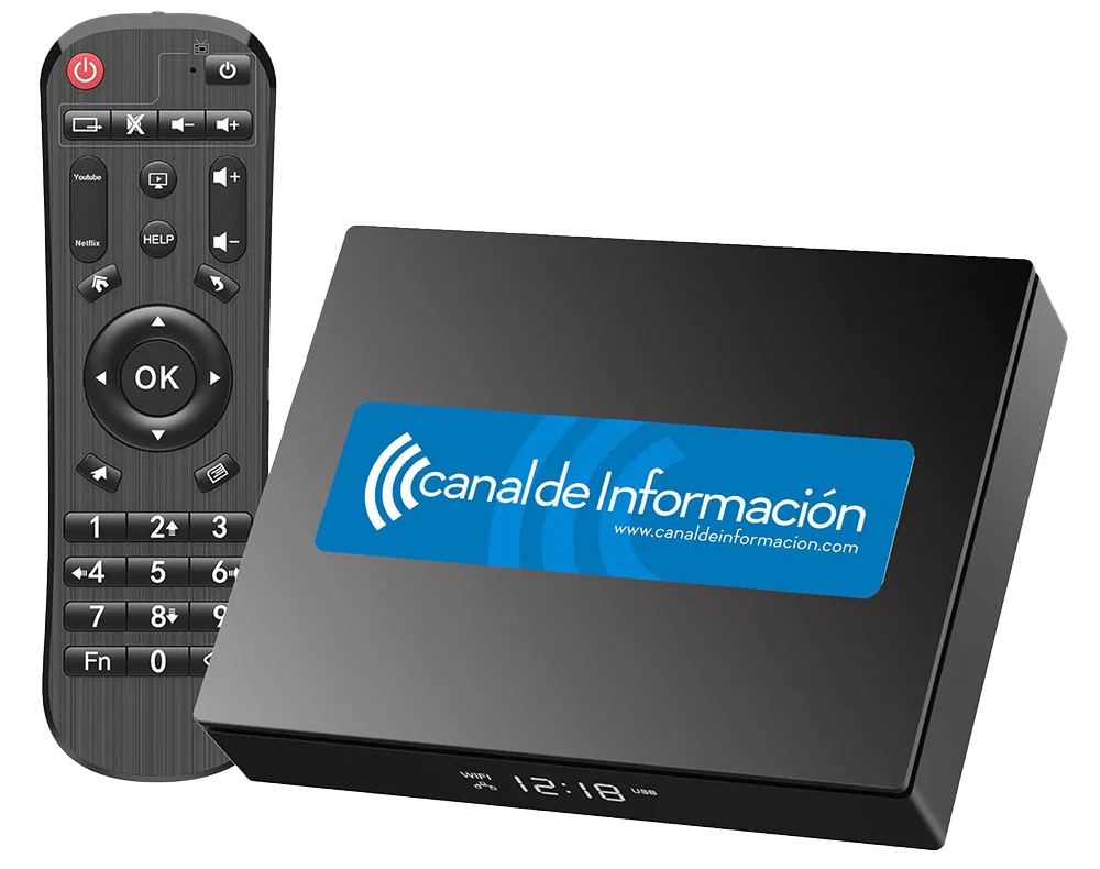 Nuestro sistema funcionan con TV BOX o televisores Android TV, solo tienes que descargar la aplicación a tu televisor y te activaremos la app, en 5 minutos tienes tu pantalla funcionando.