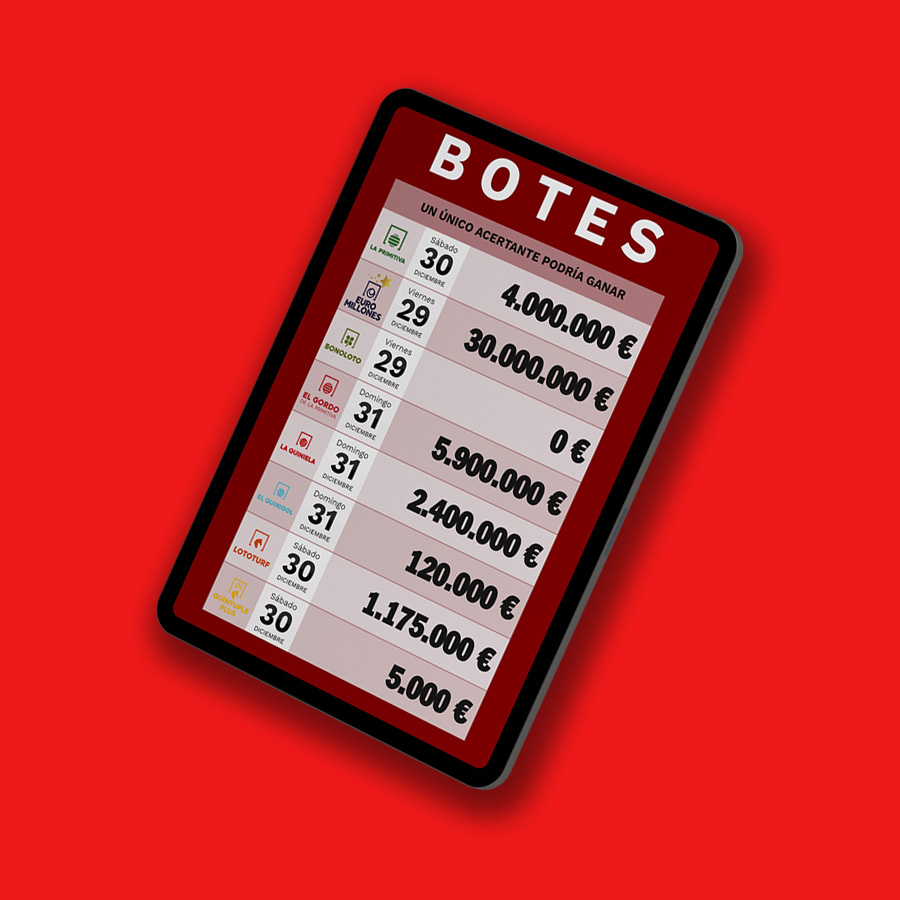Muestran hasta los tres últimos meses de información. Listas de loterías y apuestas del estado con los repartos de premios.
